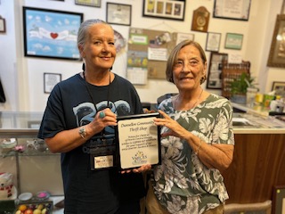 DonateGet InvolvedJoin Our BoardTo the volunteers at the Dunnellon Community Thrift Shop, we thank each of you for your participation as a Presenting Sponsor for our Quarter Auction and Dinner. Lisa Capps (l) representing the thrift shop is pictured accepting a plaque from Sue Carpenter of VFC for their generosity and their compassion for the children we serve...